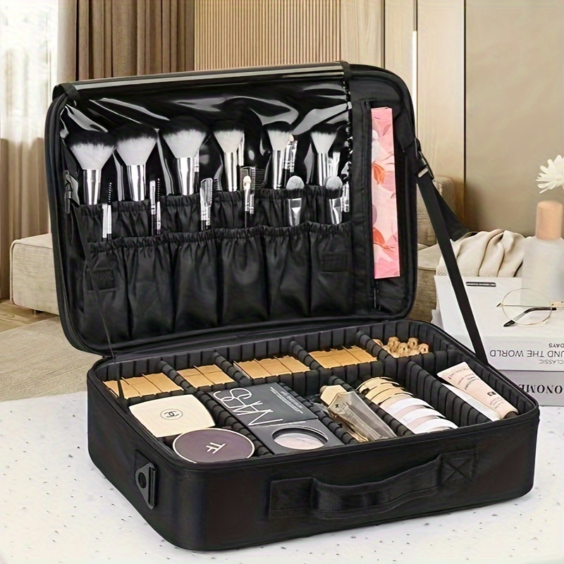 1 bag Black Makeup Organizer Case Artist Makeup Bag Large Capacity Cosmetic Bag Makeup Bag with Three Layers