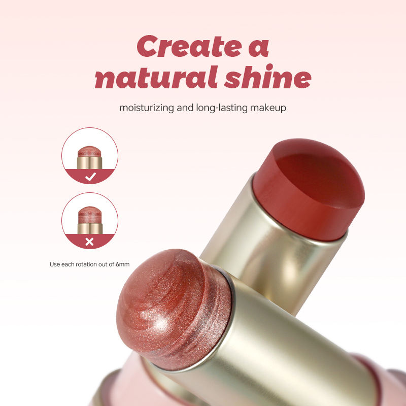The product functions as a blush, giving the cheeks a natural and charming flush. This feature ensures that the blush blends perfectly with the skin, creating a seamless and natural look.