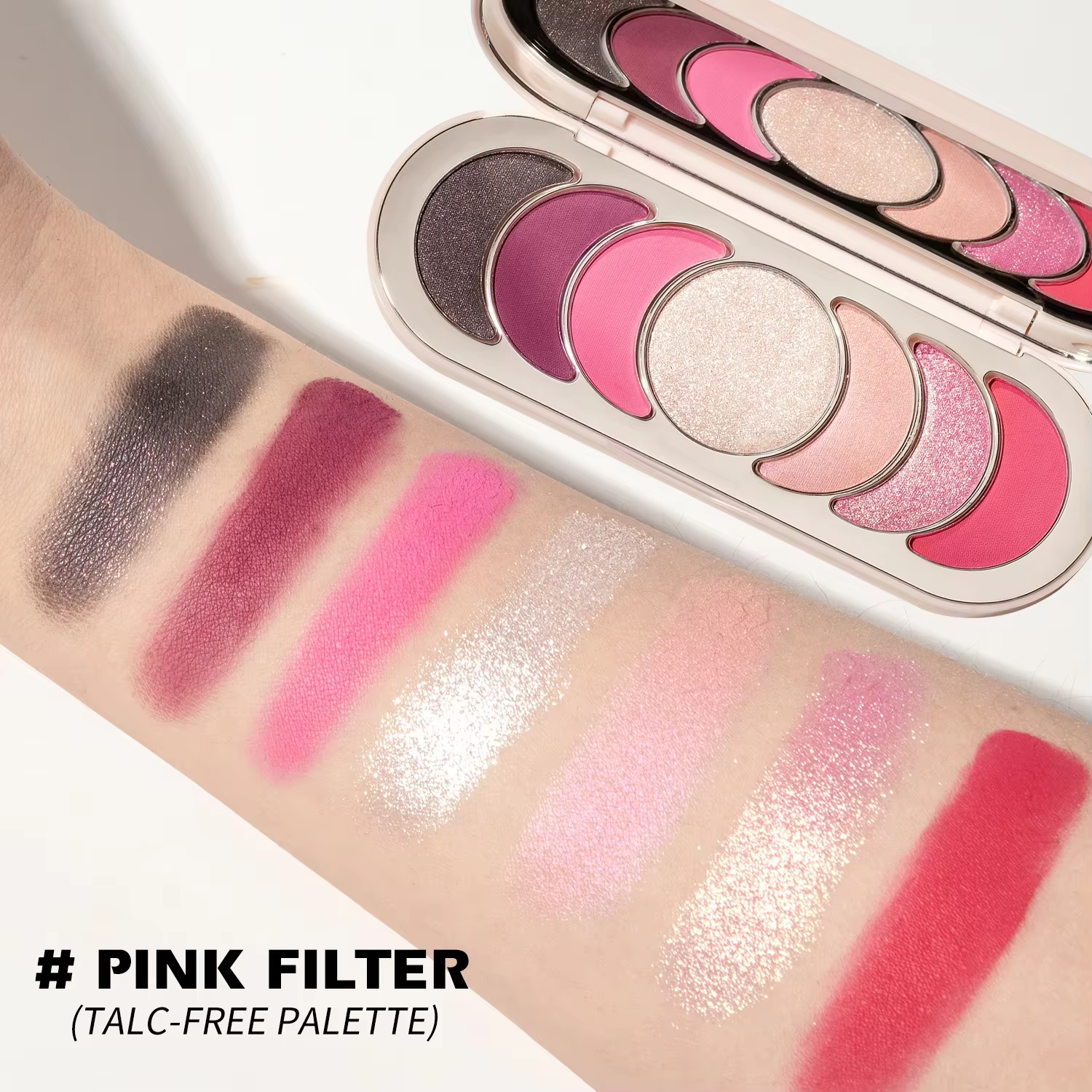 The palette features a mix of shimmering and matte finishes in shades of pink, purple, and silver, providing versatile options for creating various looks—from everyday natural makeup to bold, eye-catching party looks. The combination of colors allows for easy blending and layering, enabling you to experiment with different styles and match your outfits or moods.