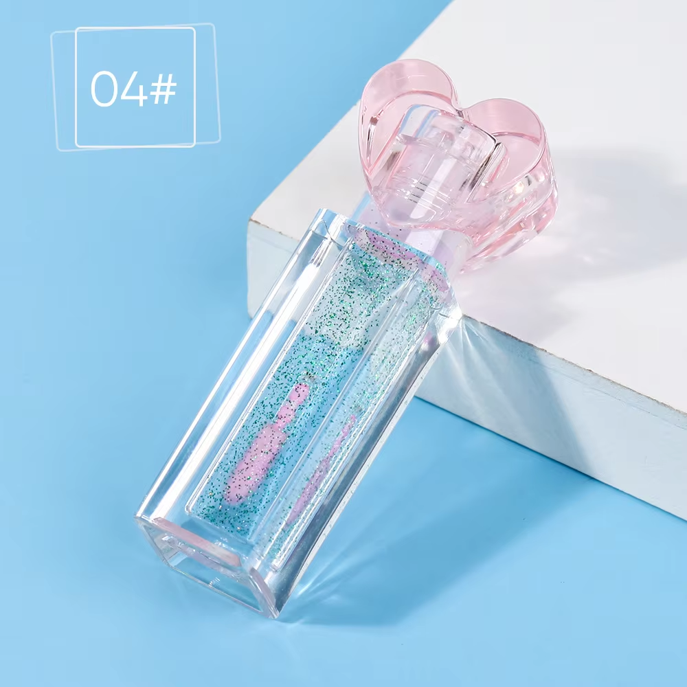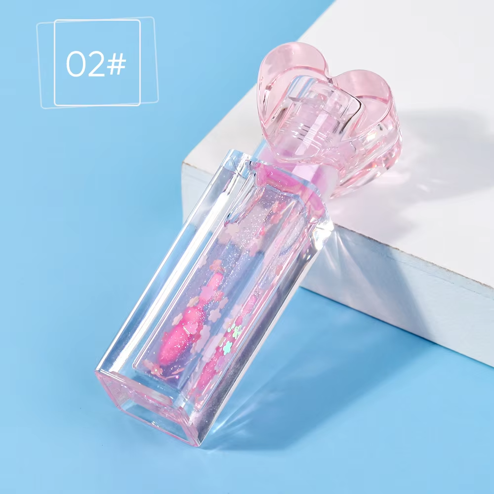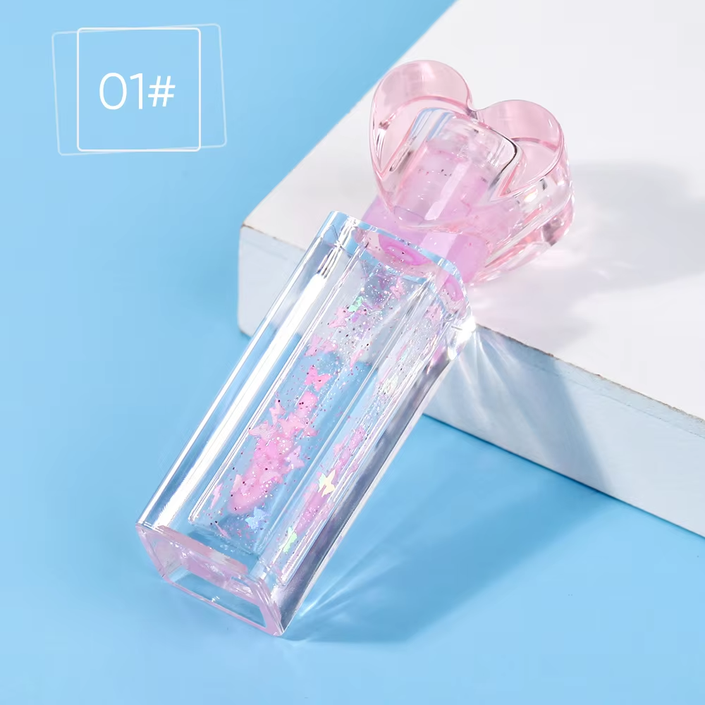 1 Pink Heart Shimmer Lip Oil Bottle Moisturizing Vegan Color-Changing Hyaluronic Acid Collagen Lip