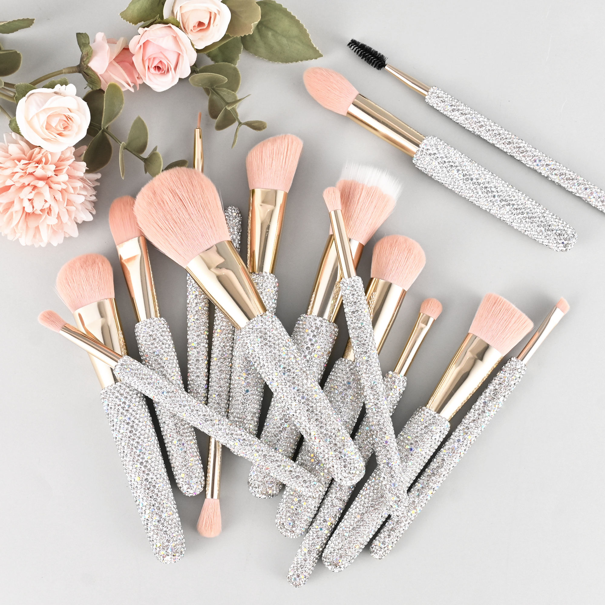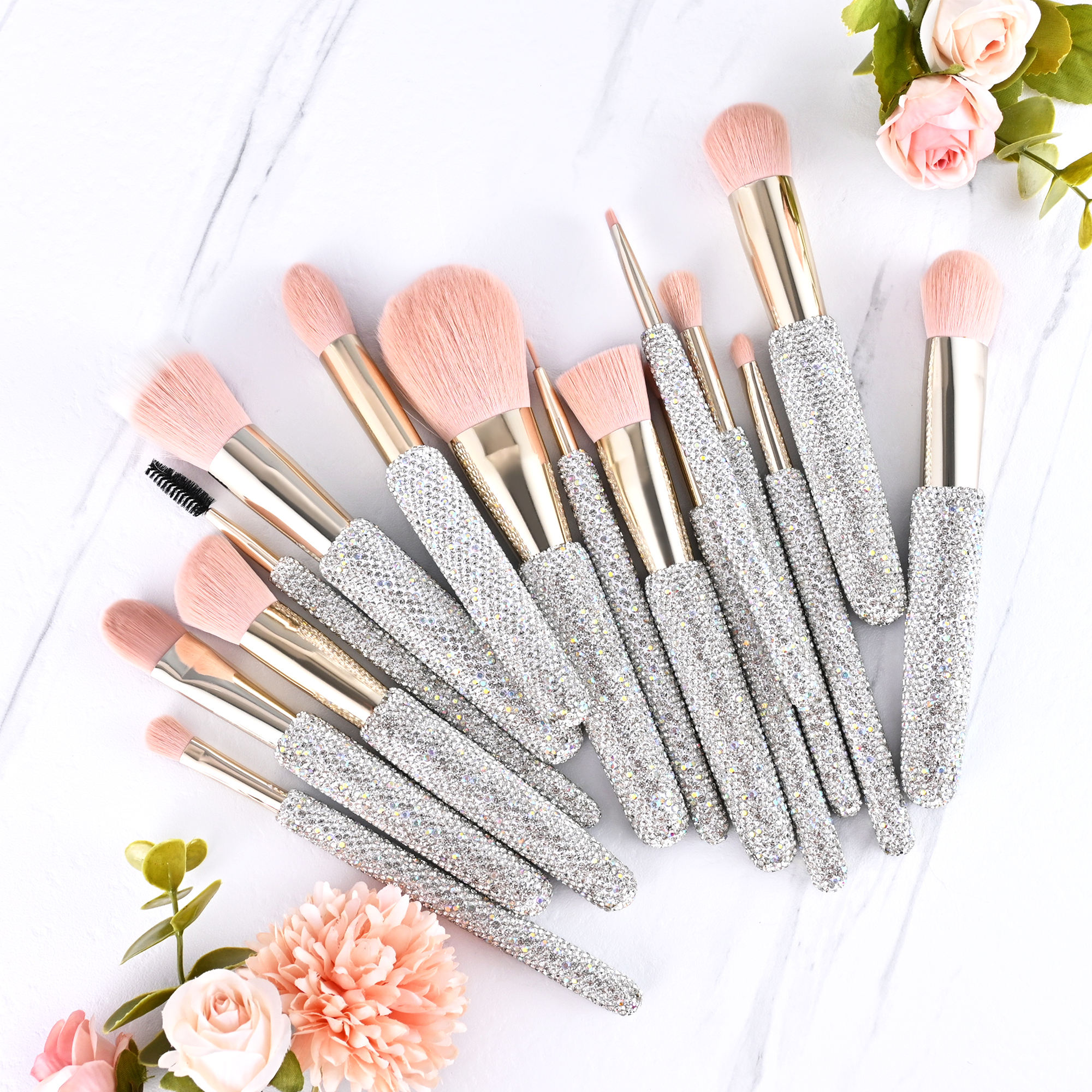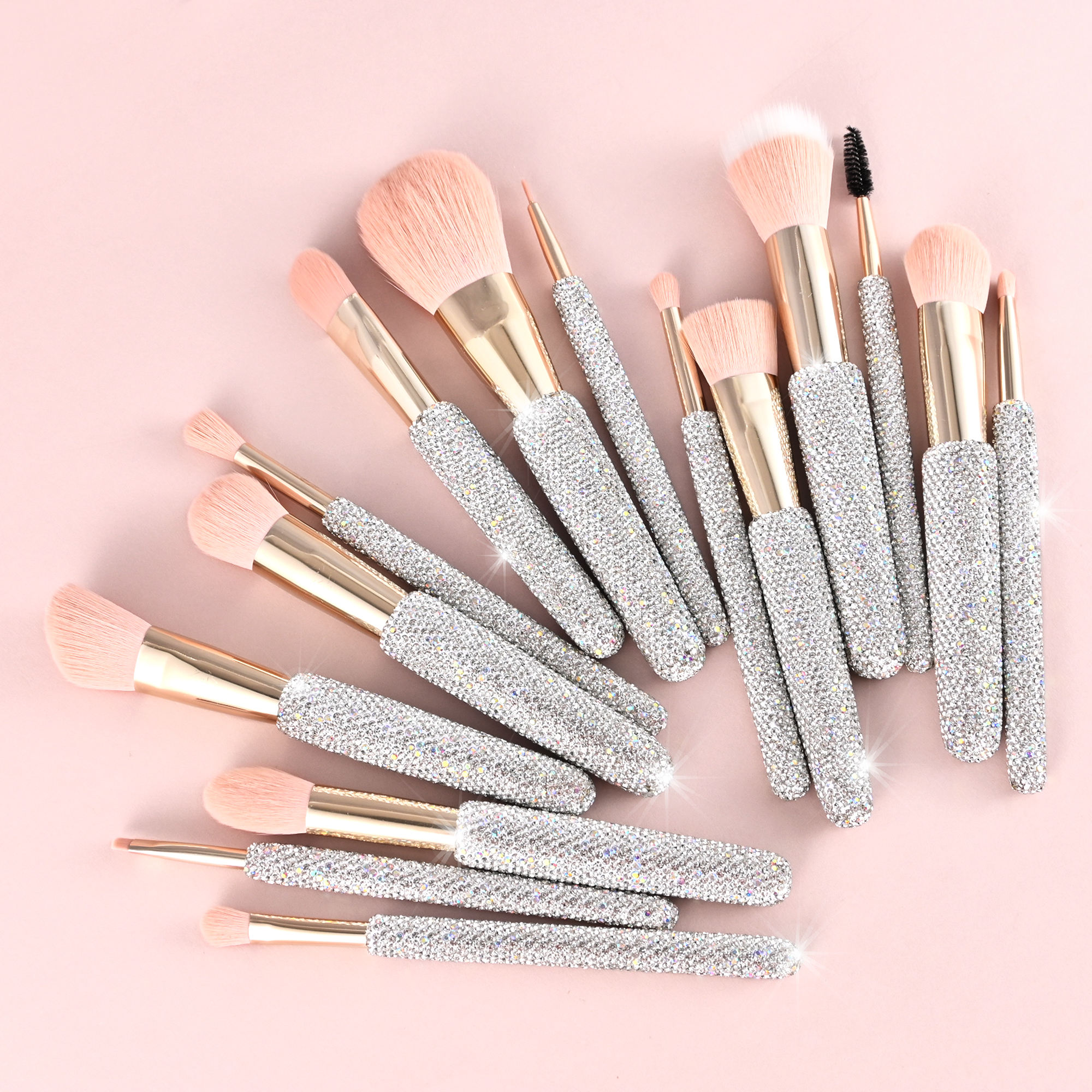15pcs Diamond Bling Makeup Brush Set High Quality Crystal Luxury Vegan Gift Makeup Brush