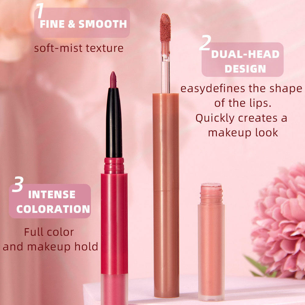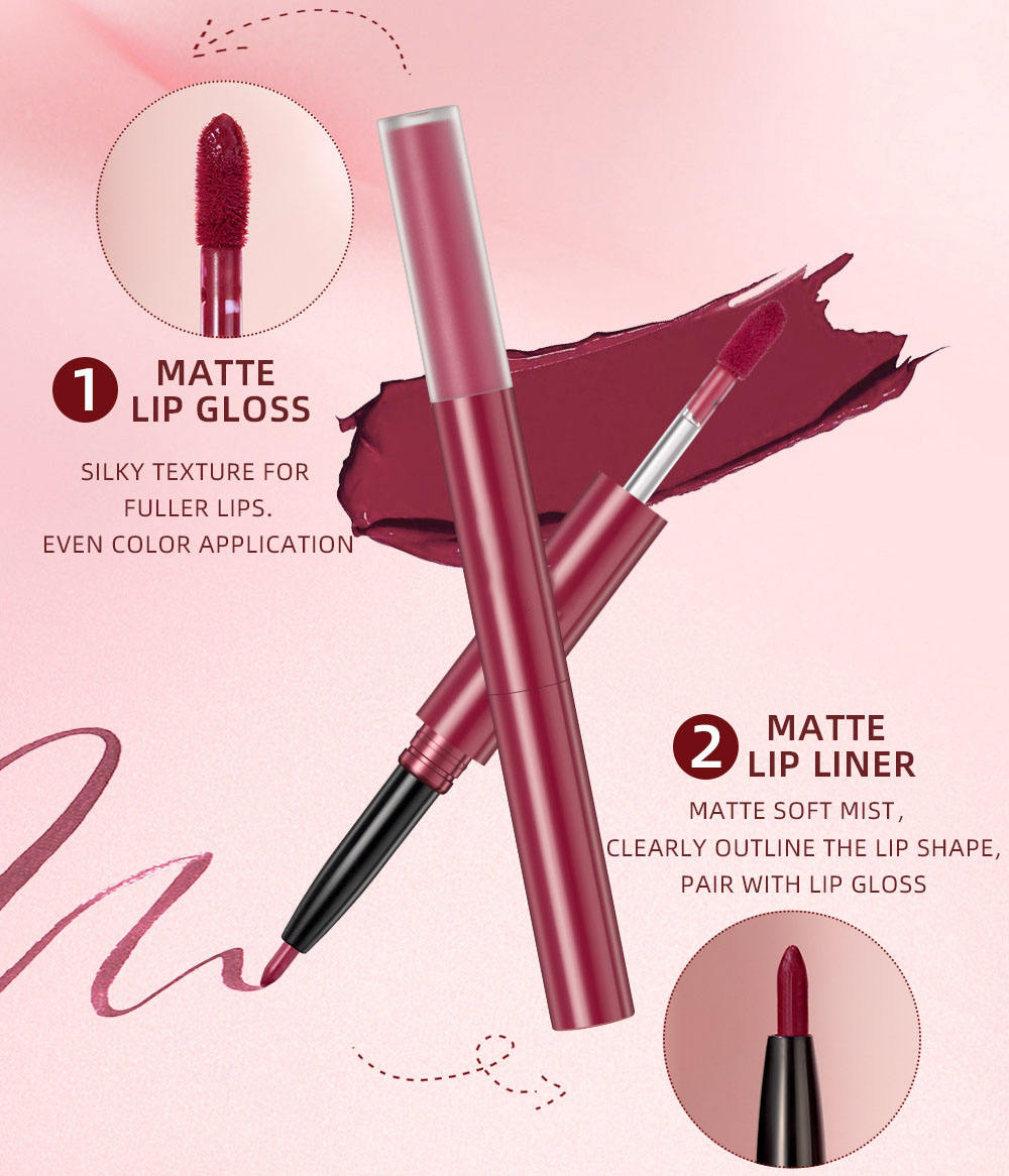 The dual – function design integrates a retractable lip liner (for precise lip – line definition) and a matte lip gloss (for smooth, long – lasting color) in a single product. This eliminates the need for separate lip – liner and lip – gloss tubes, saving space in your makeup bag and streamlining your routine.