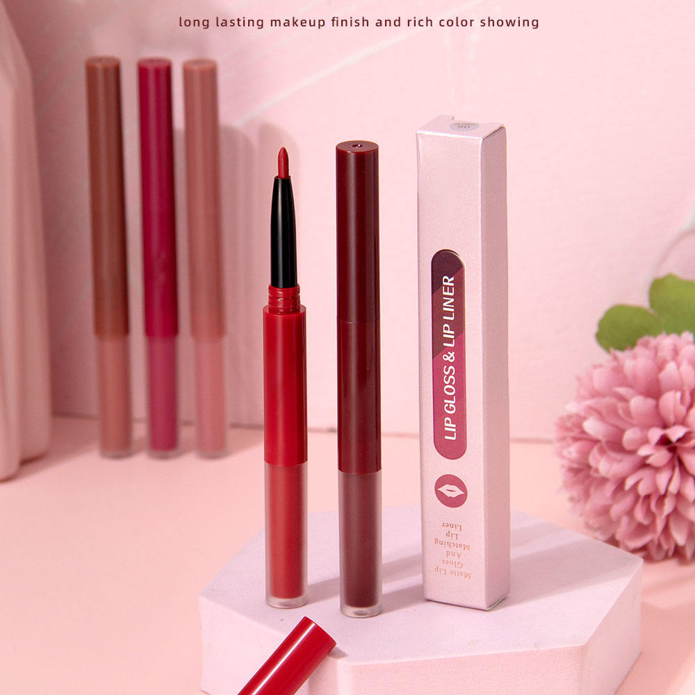 2 in 1 Waterproof Makeup Matte Lip Gloss Cosmetic Retractable Lip Liner