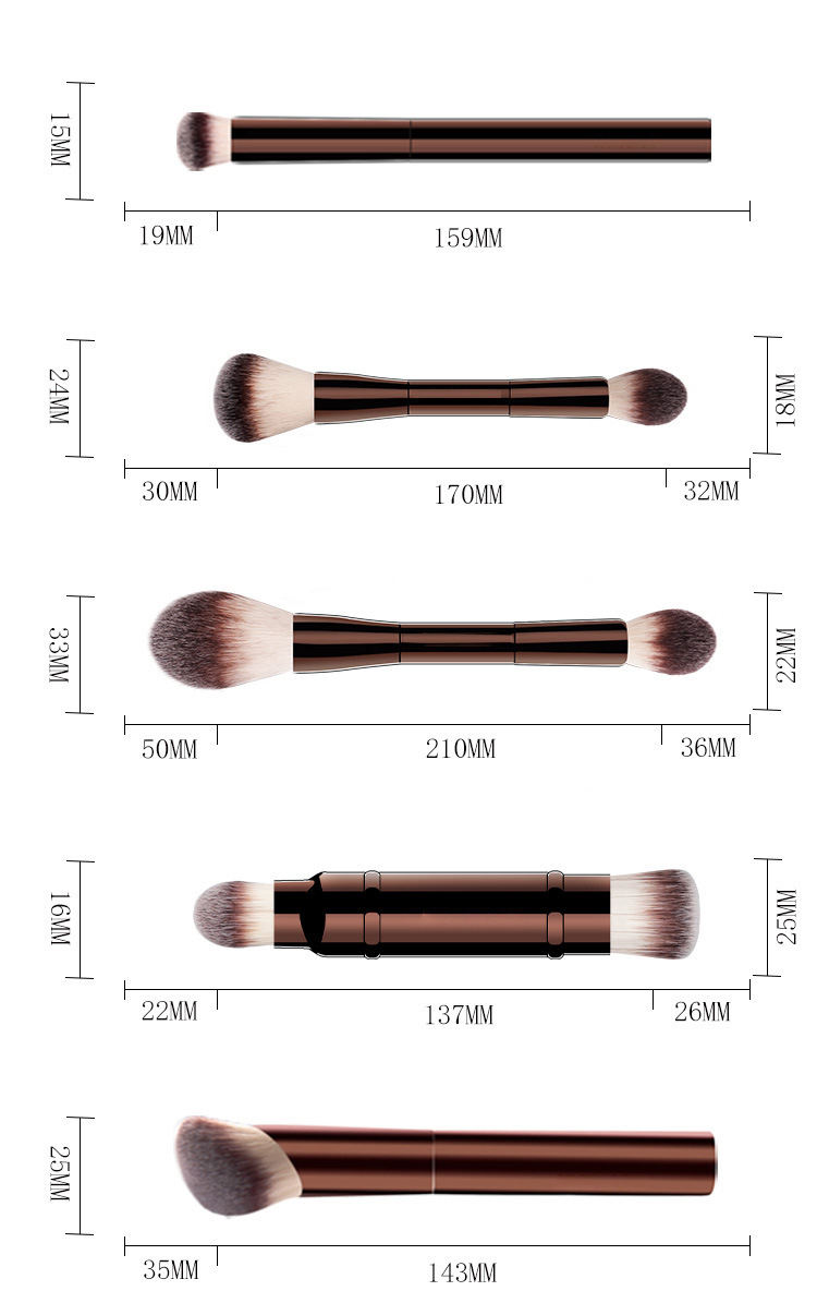 Each brush features two distinct brush heads (e.g., one for foundation blending, the other for powder setting). This cuts your makeup time in half — you can apply and set makeup with a single brush, eliminating the need to switch tools.