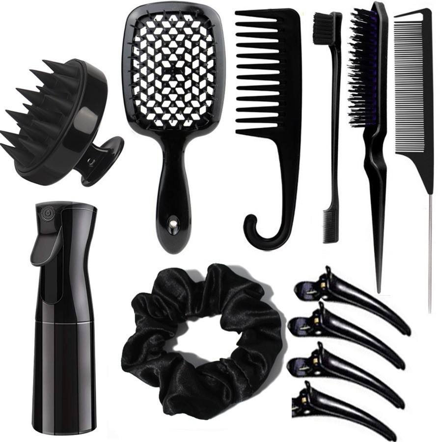 The comb set is designed for all hair types—whether you have fine, thick, curly, or straight hair. Its tools (e.g., detangler brush, teasing brush) are crafted to address diverse hair needs, ensuring effective styling and care for any hair texture.