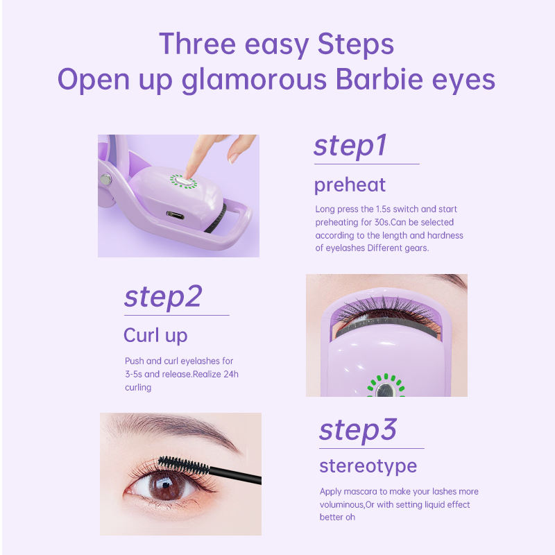 Heated Eyelash Curler USB Rechargeable Portable Mini Stereotypes 24 Hours Electric Heated Eyelash Curler