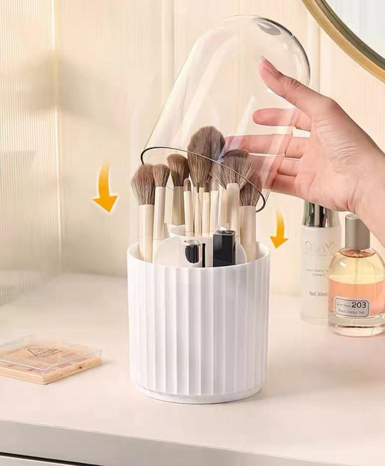 The transparent, rotatable lid keeps dust and debris away from your brushes and makeup, ensuring they stay clean and hygienic. The lid’s transparency also allows you to see the contents without opening it, saving time.