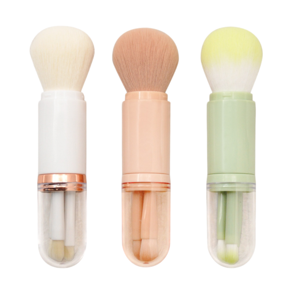 The set includes 4 brushes in one, covering all essential makeup categories: