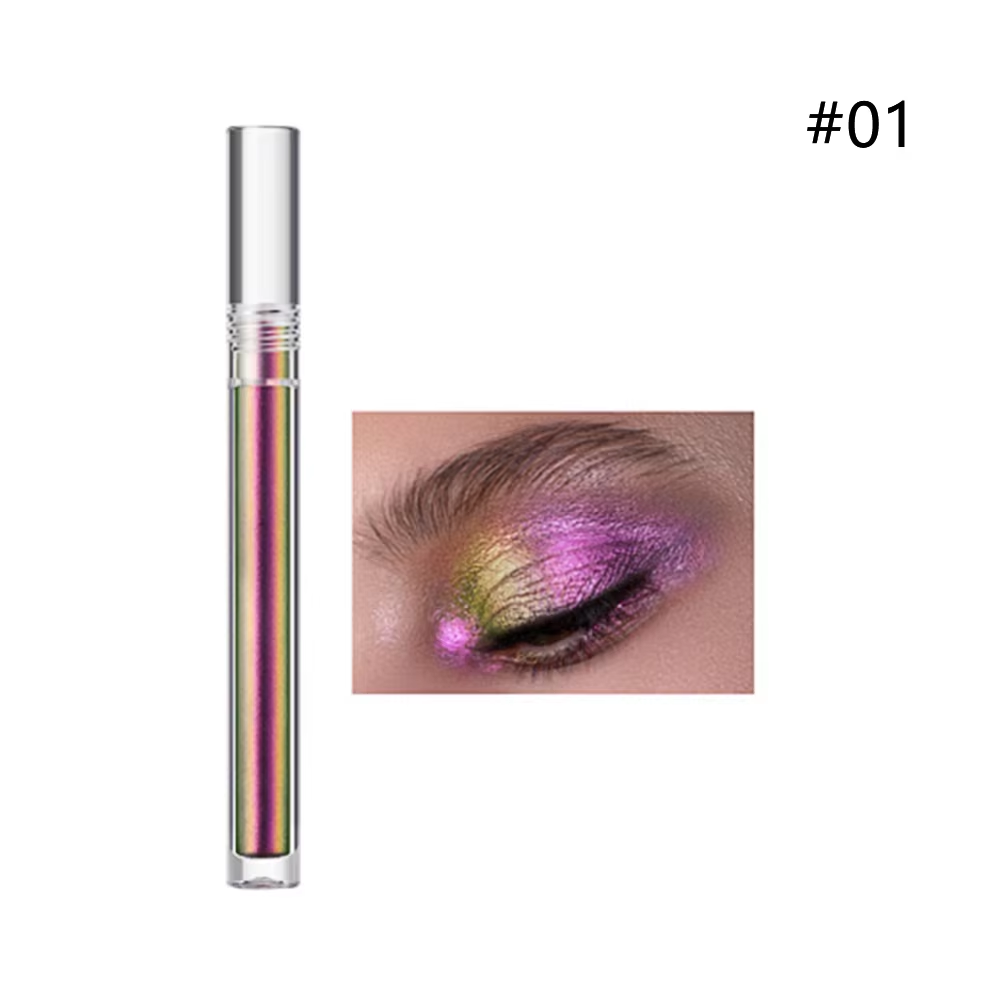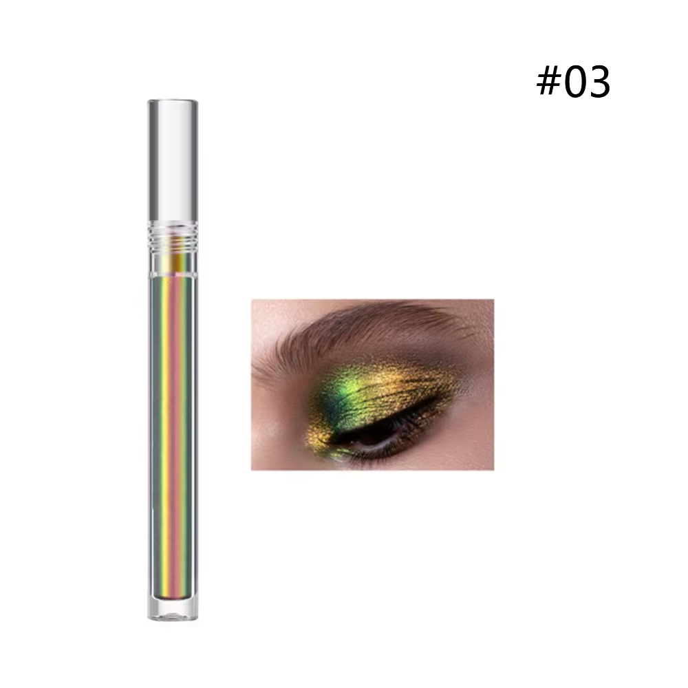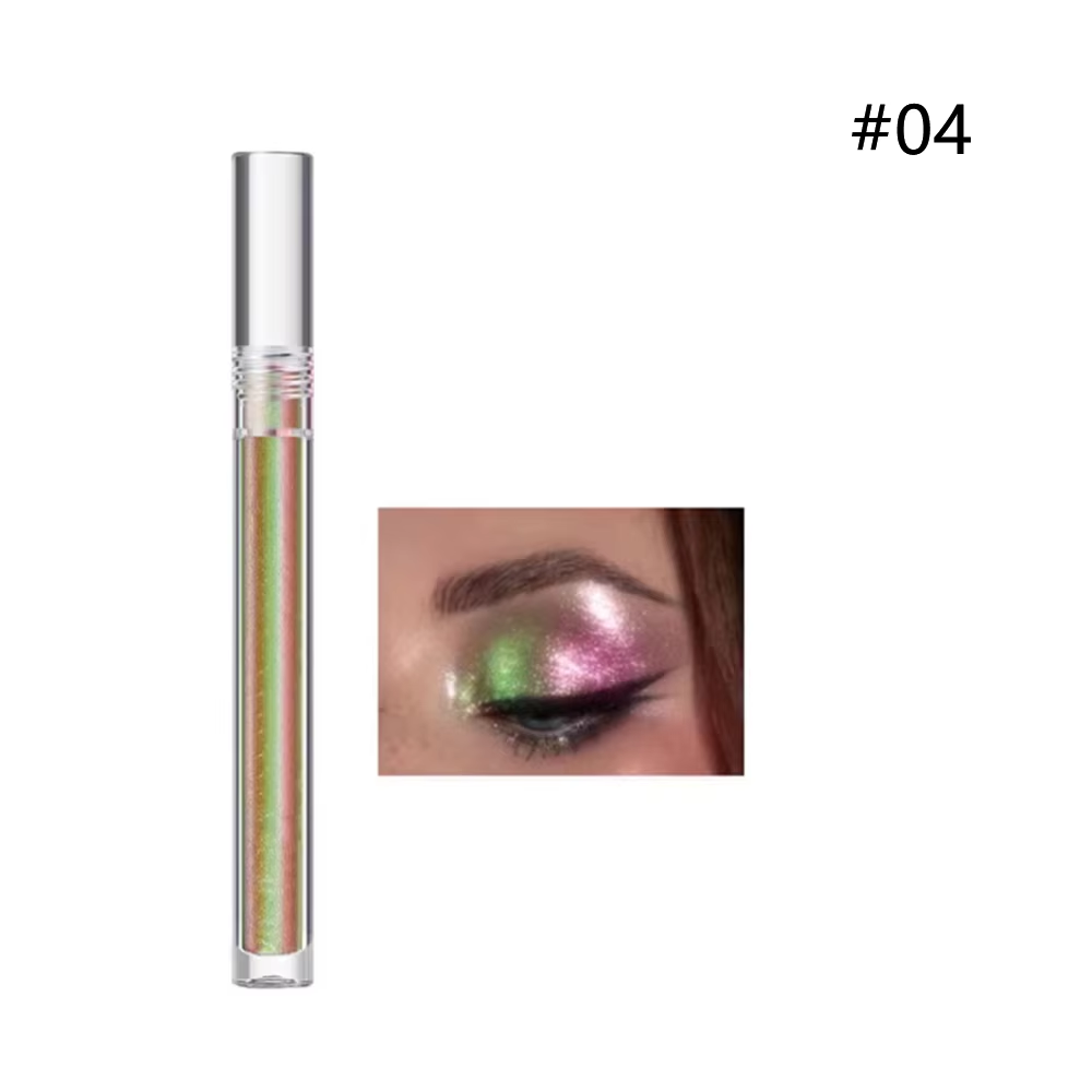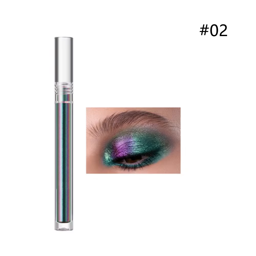 The eye shadow shifts and dazzles in the light, creating dynamic, multi-chrome looks that adapt to different lighting conditions, adding a magical, eye-catching dimension to your makeup.