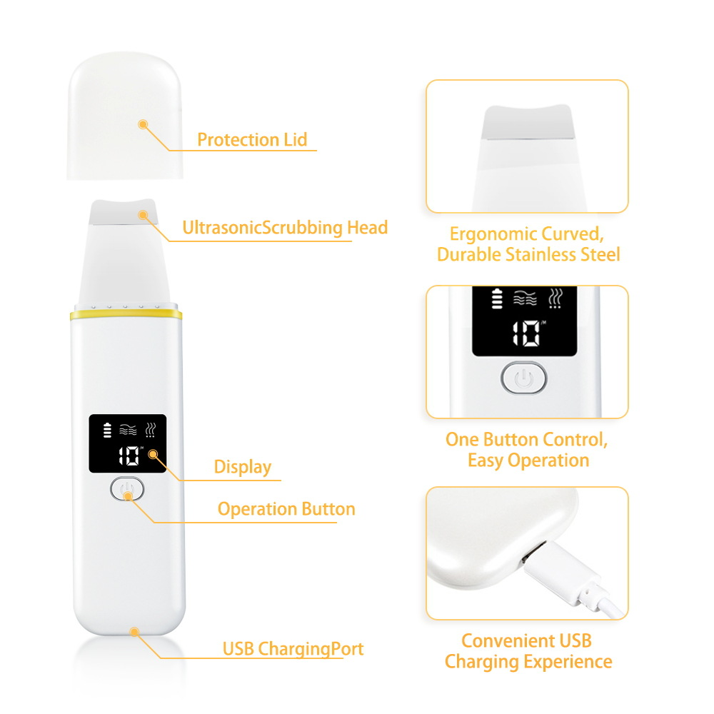 Mini and Portable Beauty Machine Ultrasonic Skin Scrubber with Screen Model Deep Skin Cleansing Scrubber