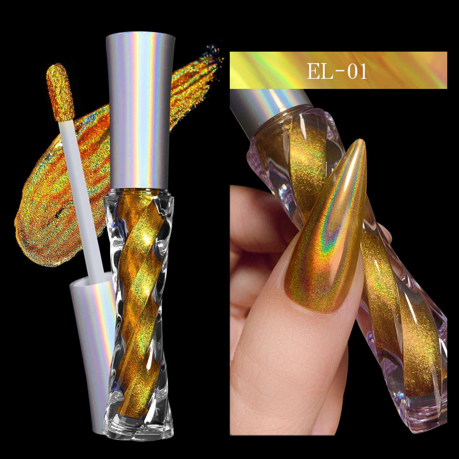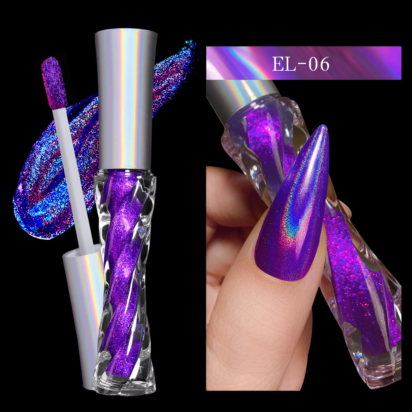 The laser pigments shift colors in the light, producing a dynamic, rainbow-like effect that adapts to different lighting conditions, making nails look mesmerizing and eye-catching.