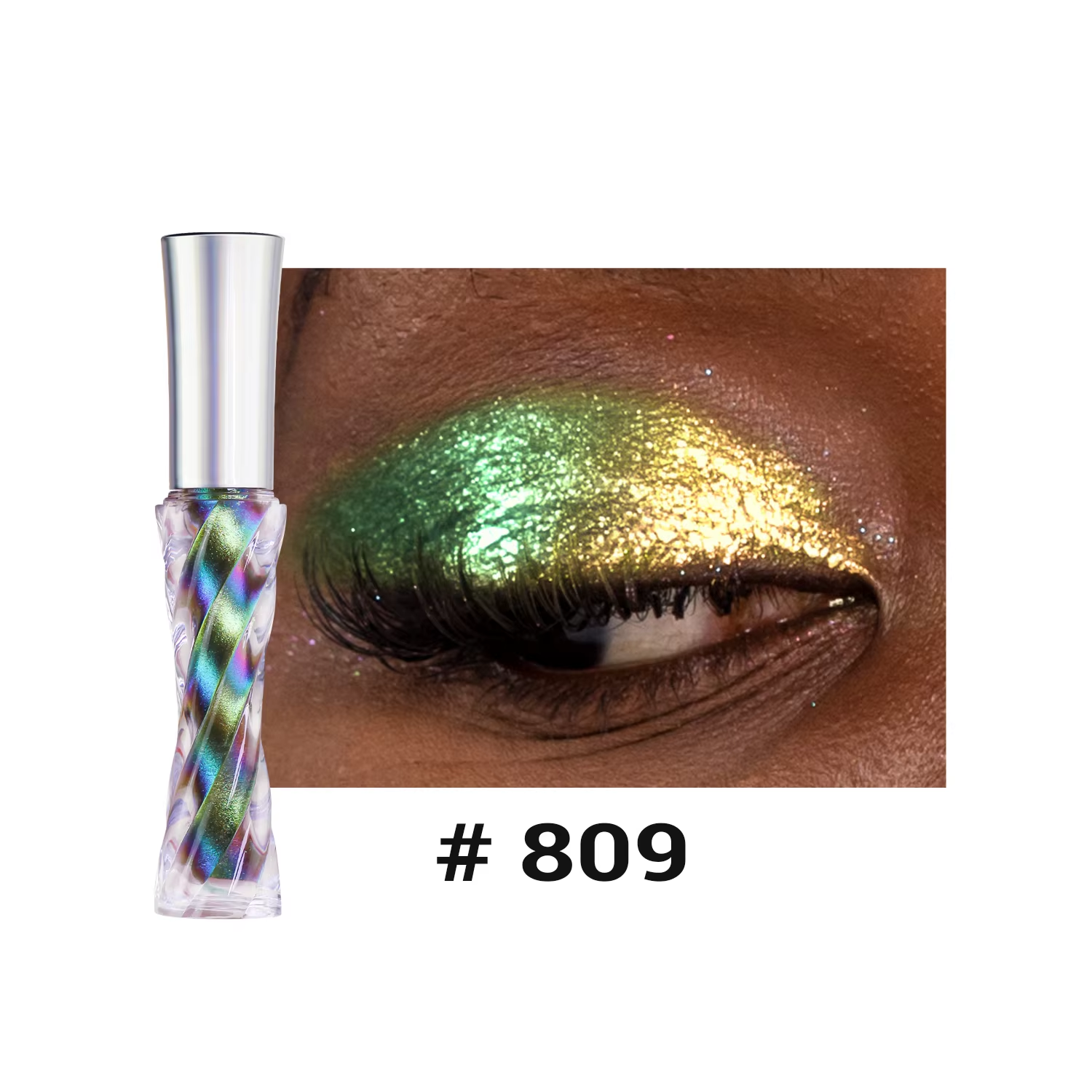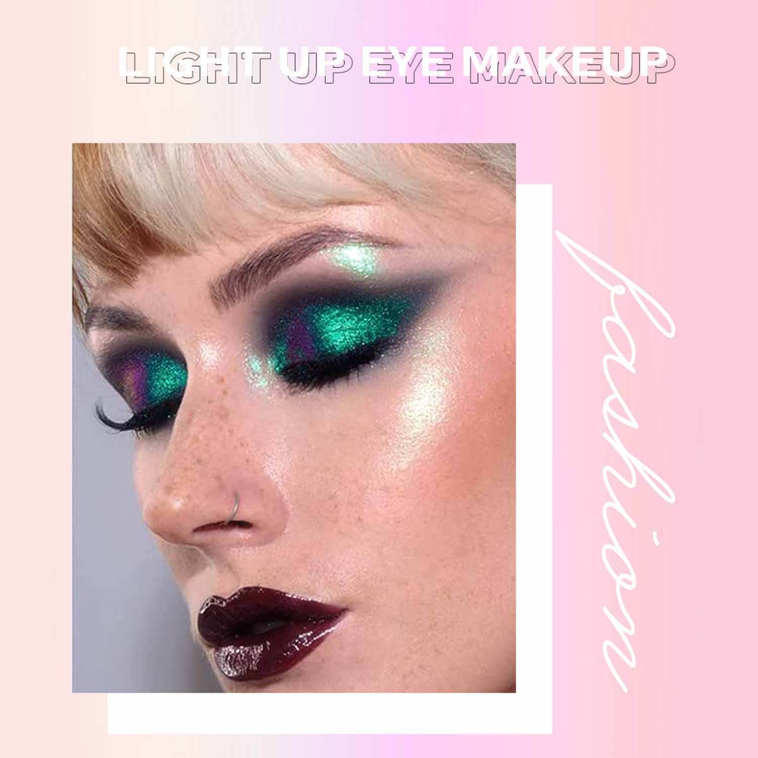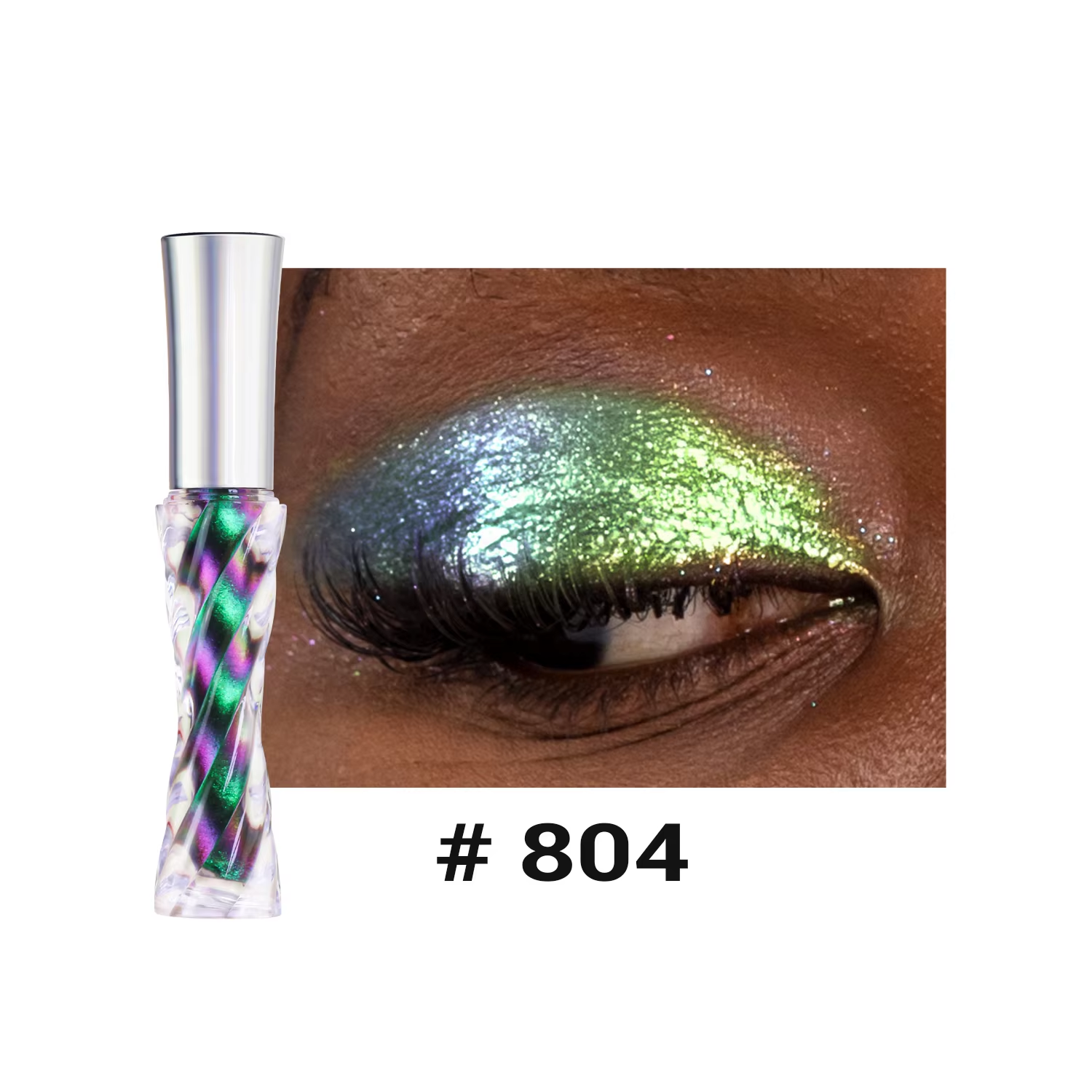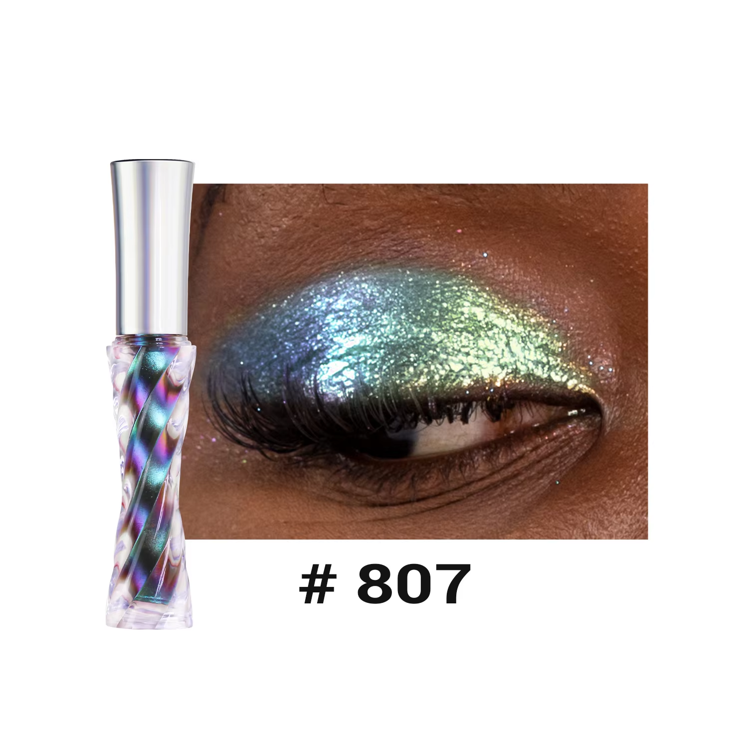 The holographic pigments shift colors in the light, producing a dynamic, rainbow-like effect that adapts to different lighting conditions, making eyes look mesmerizing and eye-catching.