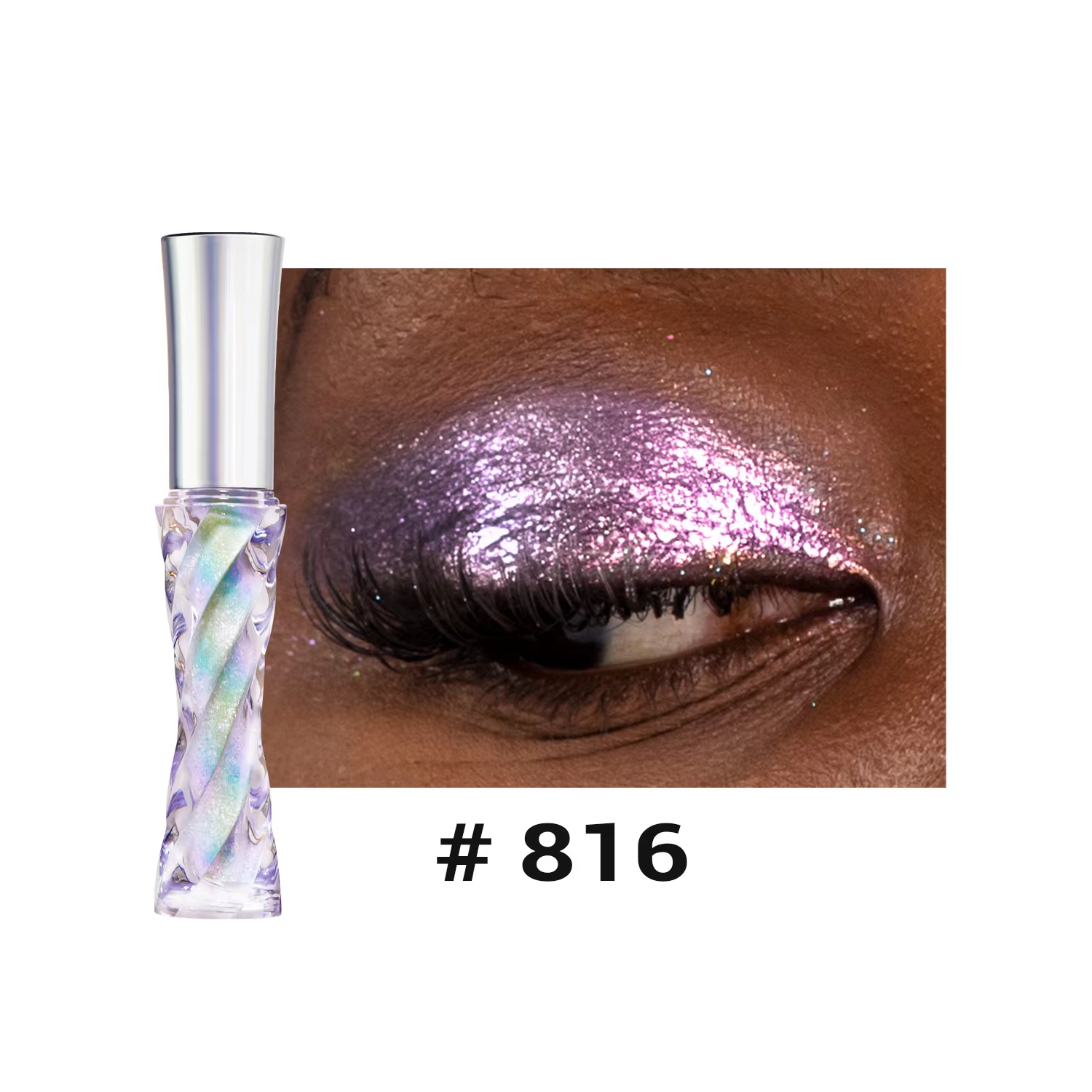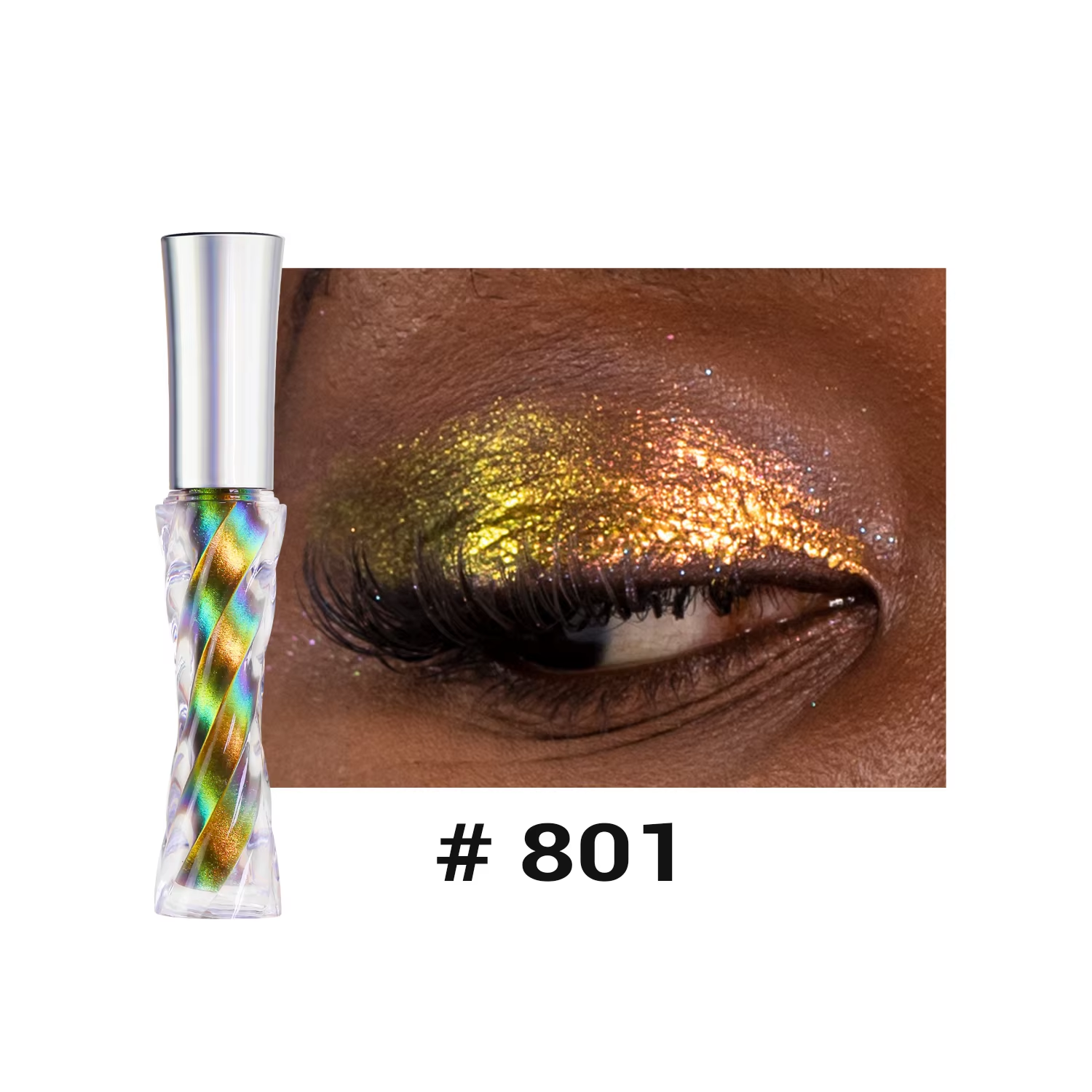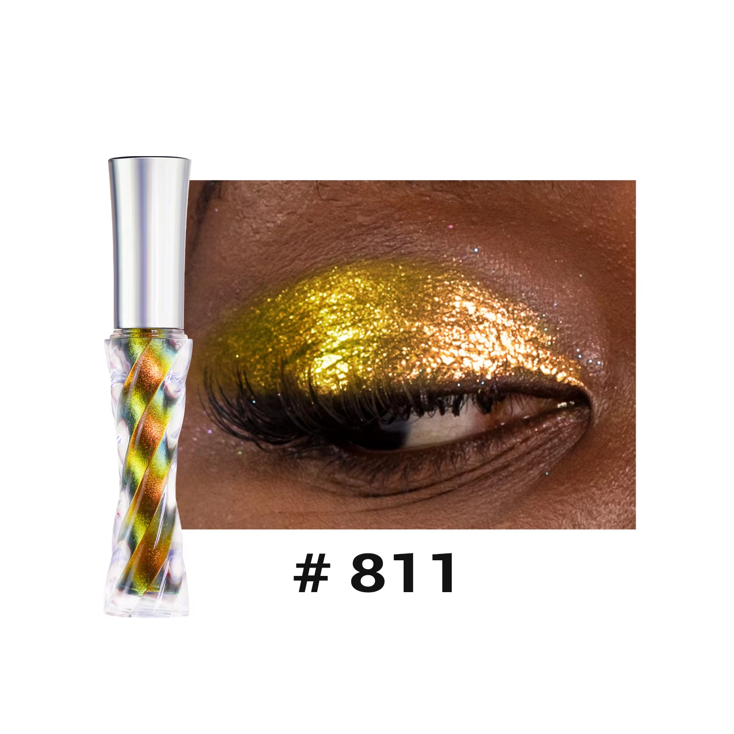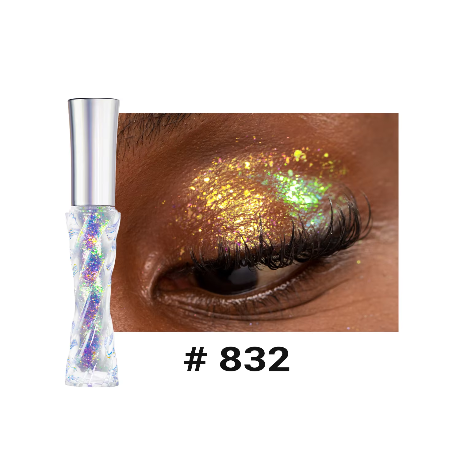 The holographic pigments shift colors in the light, producing a dynamic, rainbow-like effect that adapts to different lighting conditions, making eyes look mesmerizing and eye-catching.