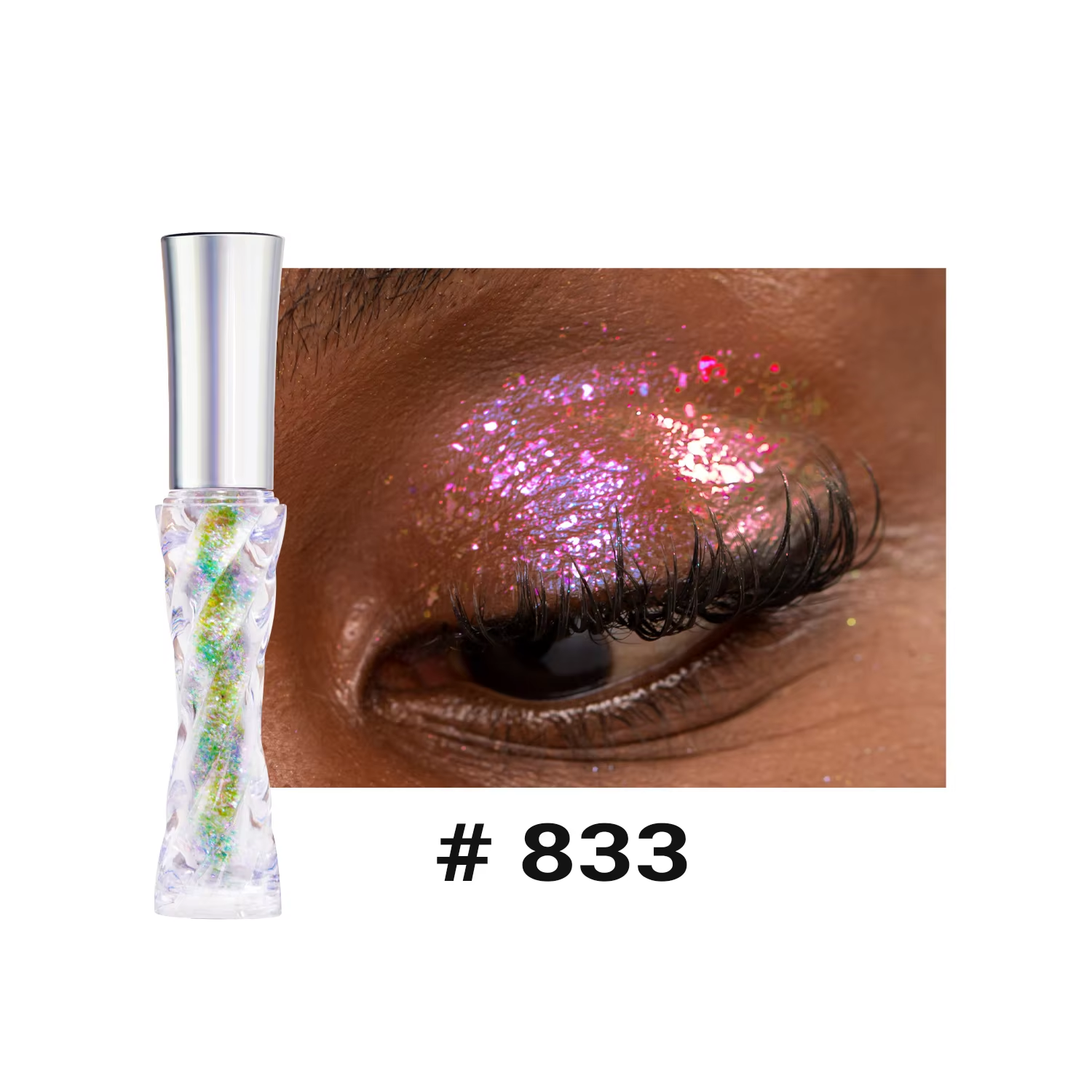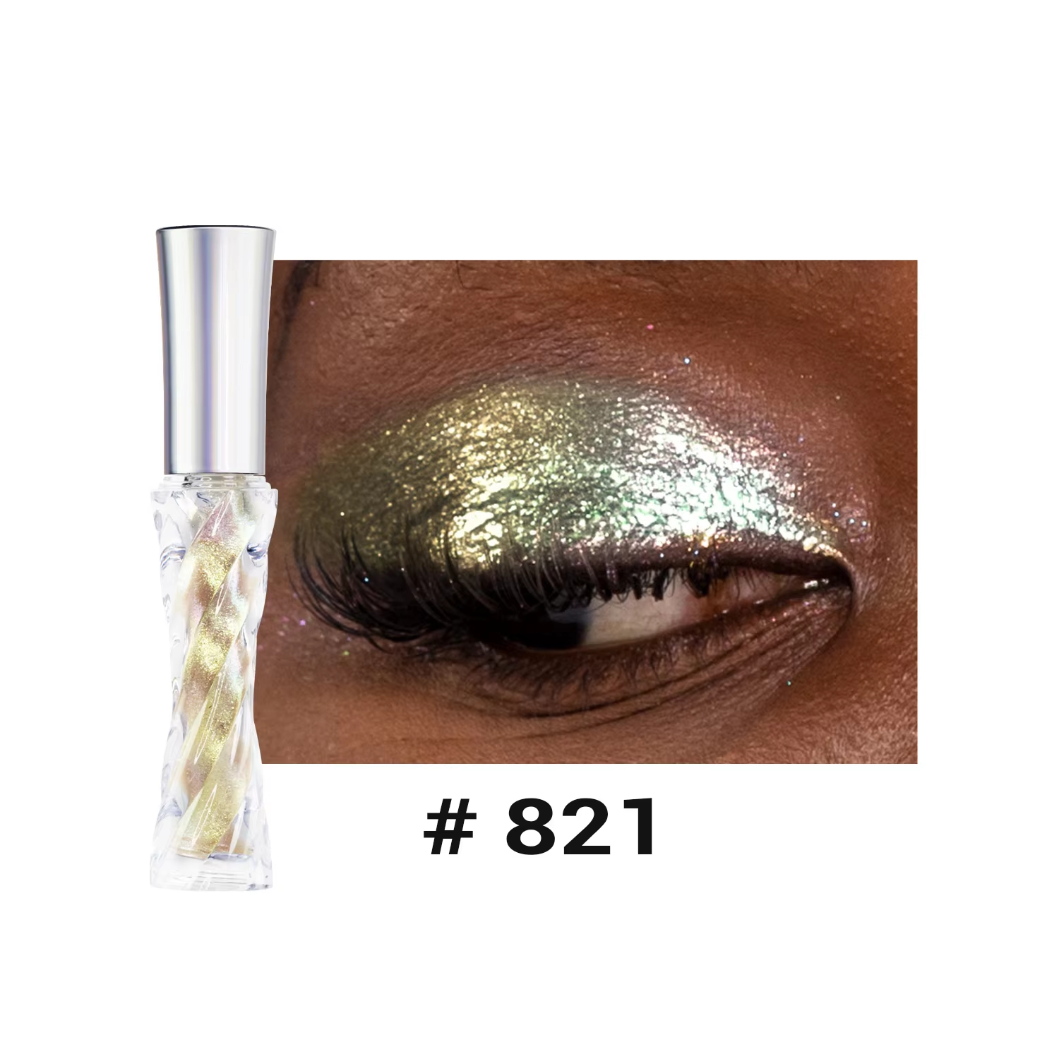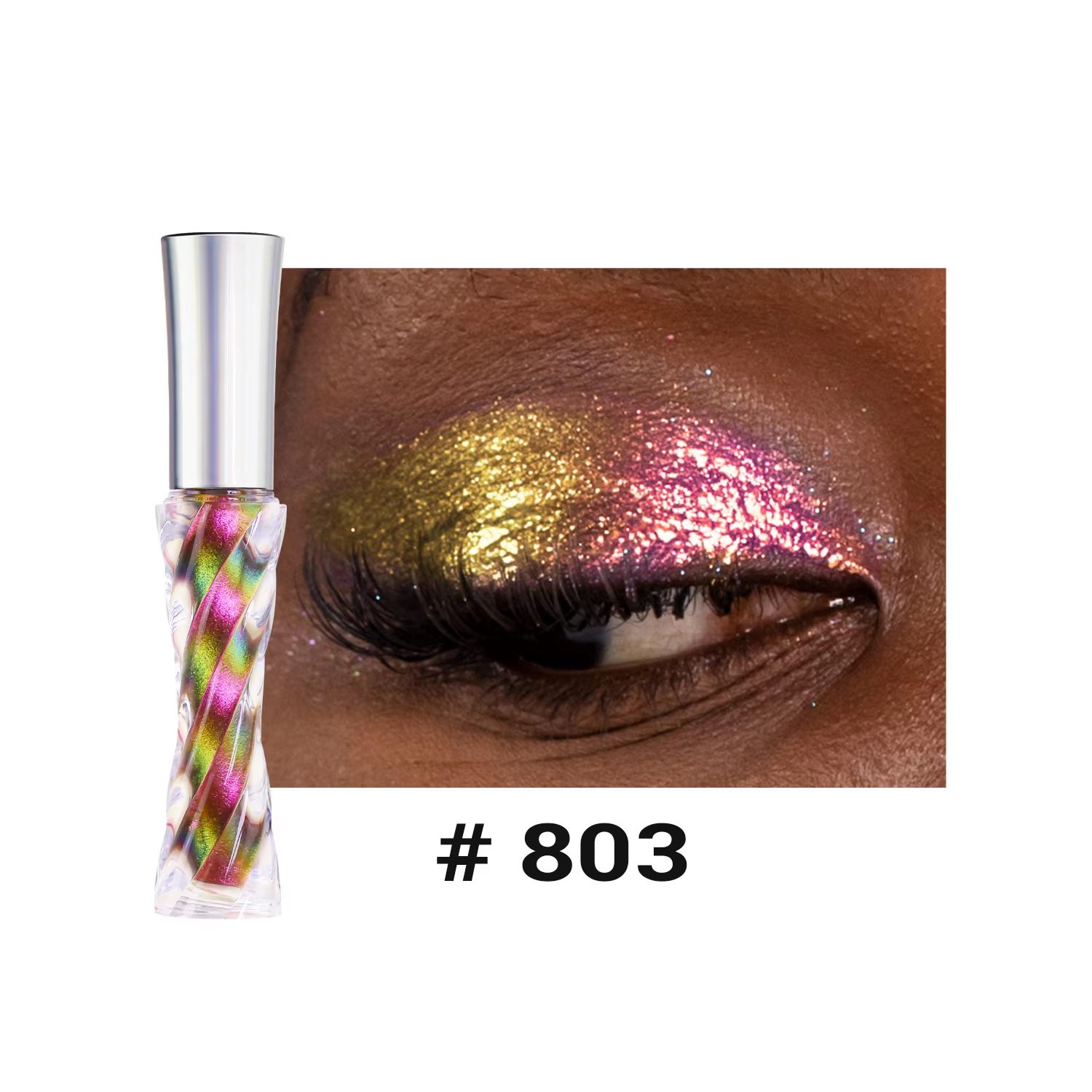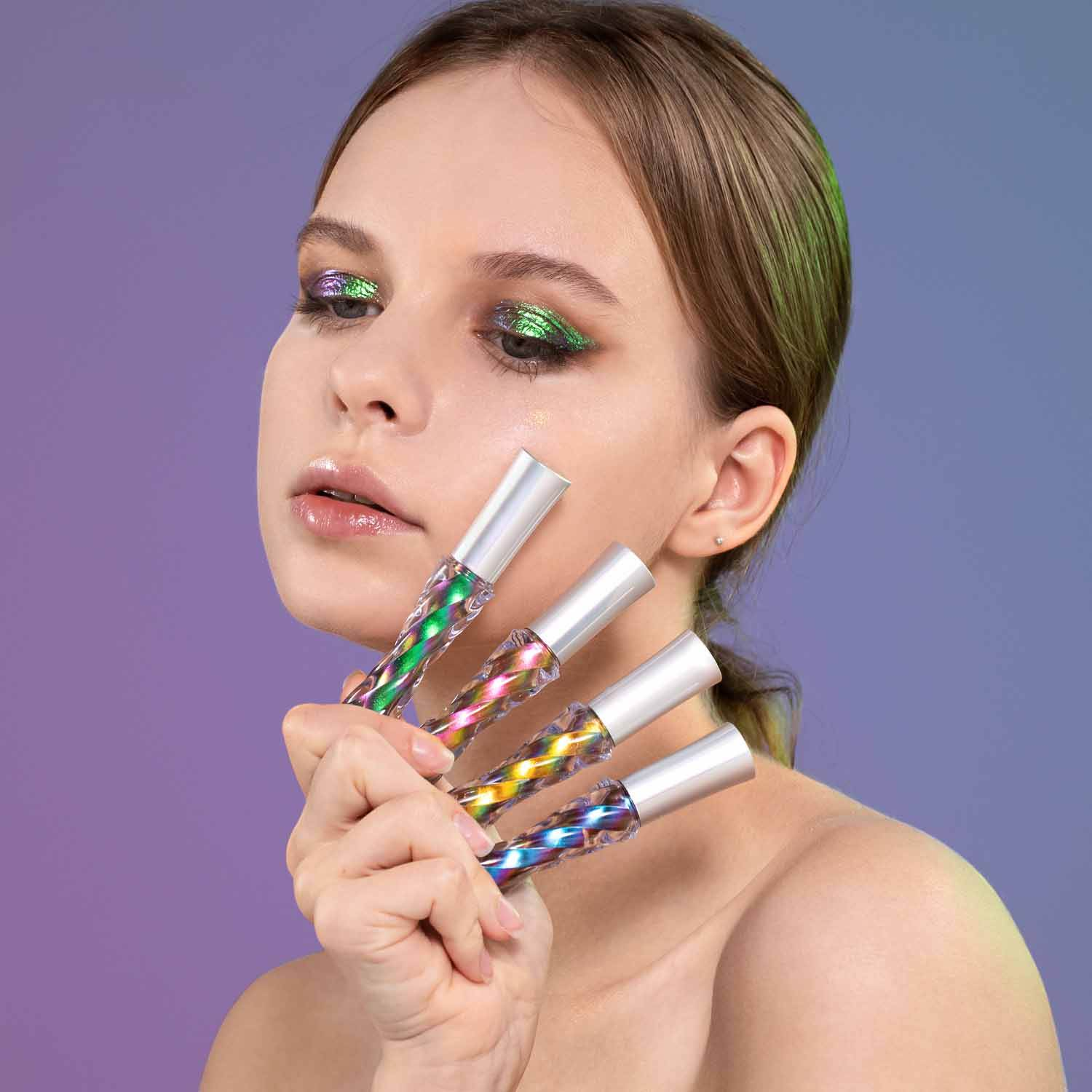 The holographic pigments shift colors in the light, producing a dynamic, rainbow-like effect that adapts to different lighting conditions, making eyes look mesmerizing and eye-catching.