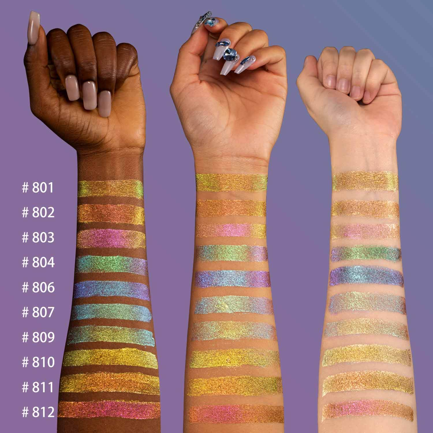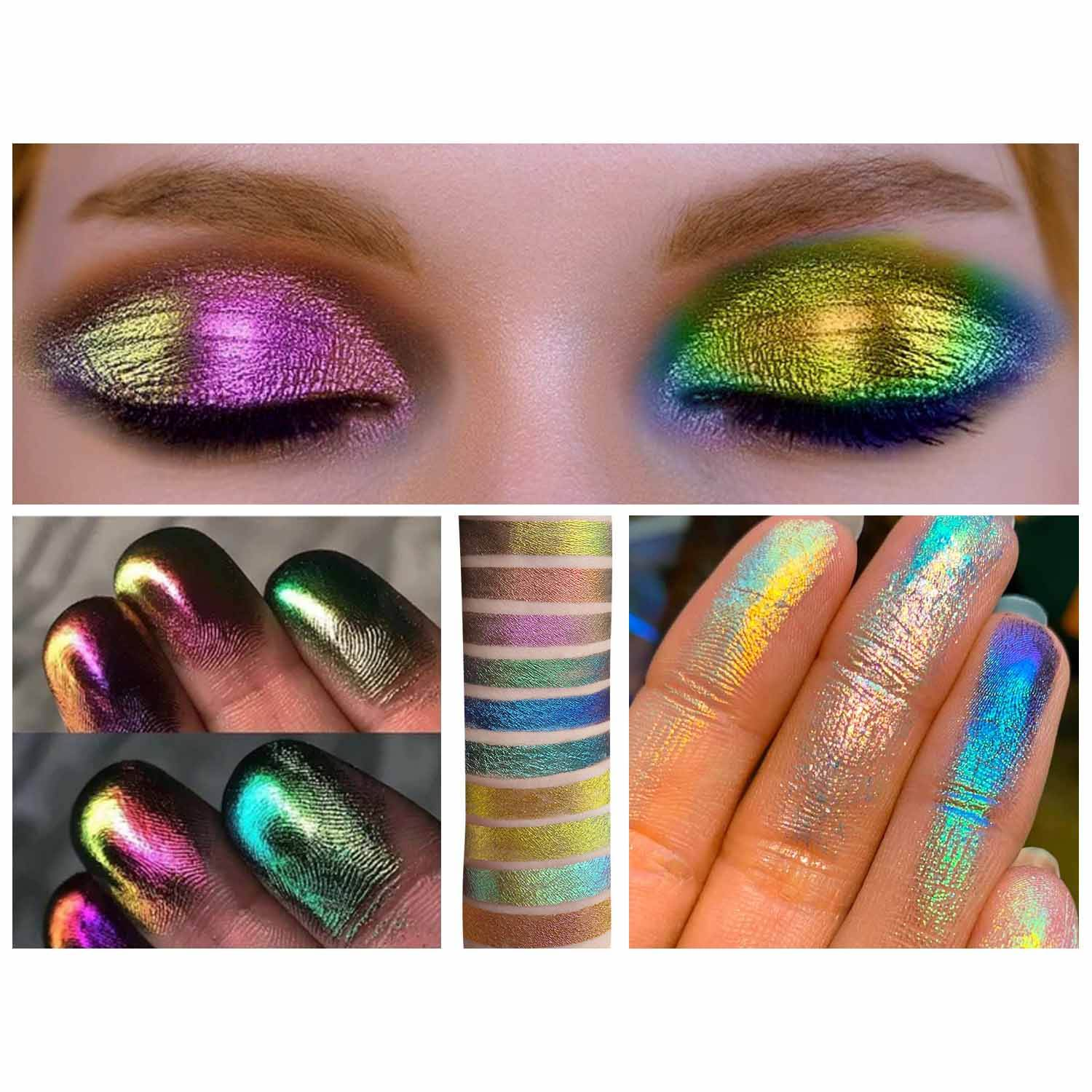 The chameleon pigments change colors in response to light or temperature, adding a unique, interactive dimension to eye makeup that’s both fun and attention-grabbing.