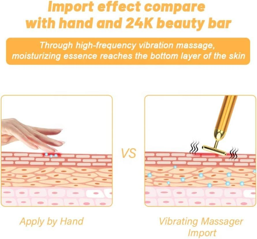 T Shape Beauty Bar 24k Golden Face Massager Electric Face Lift Pen Anti Aging Beauty Enhancer Eye Vibrating Massage Stick