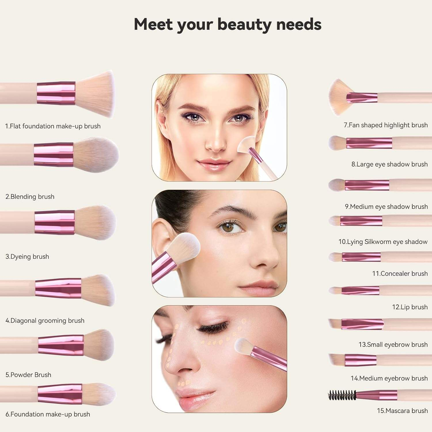 Foundation & Blush Brushes‌: Blend products seamlessly for a flawless base.