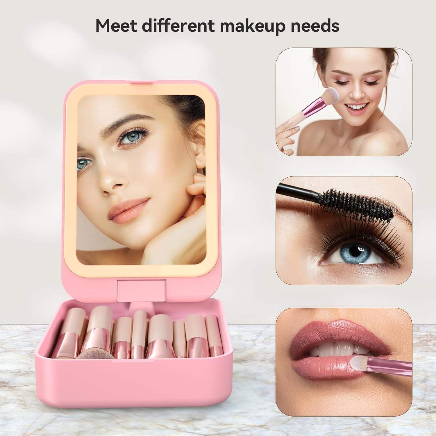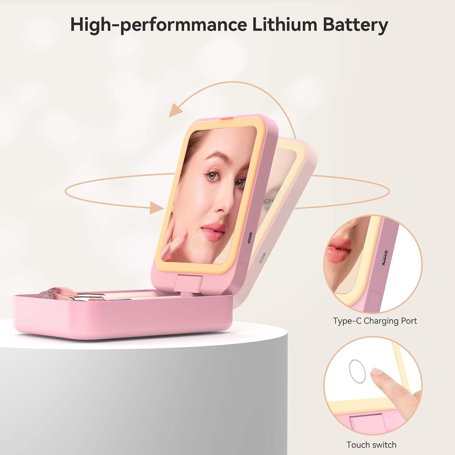 Convenient for Travel‌: The mirror is compact and portable, so you can touch up your makeup on the go, in hotels, or even on airplanes.