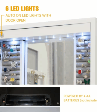 When closed, it functions as a full – length mirror with LED lights, perfect for daily makeup, dressing, or outfit checks.